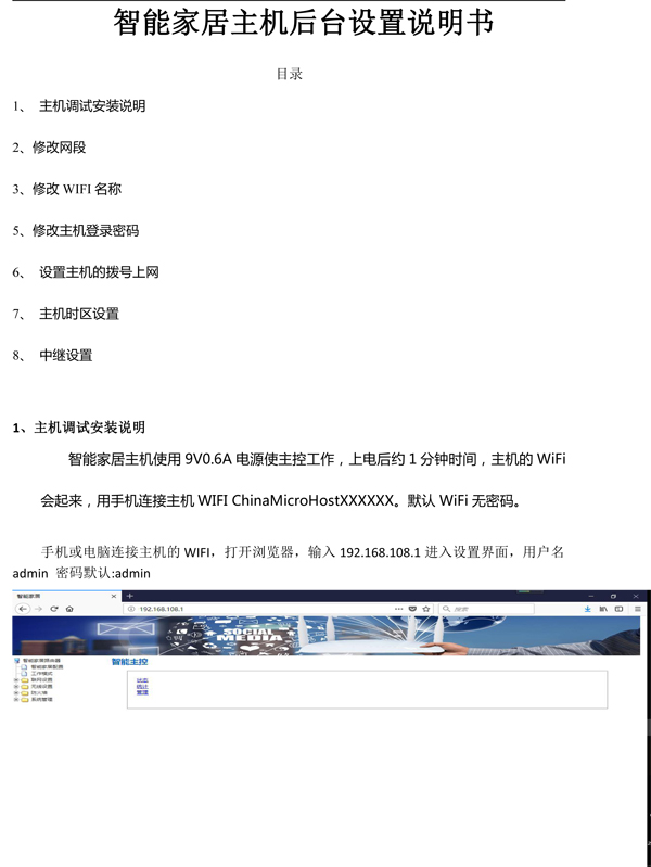 智能家居网关主机使用说明书